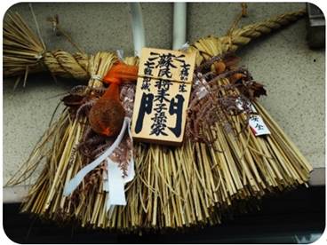 お伊勢さんの注連縄 お伊勢参りの際に珍しいものを見つけました。 二見浦駅から夫婦岩に向かう途中の家の玄関の注連縄です。 そ みんしょうらい しそん かもん 「蘇 民 将 来 子 孫 家 門」 と書かれていて、珍しいと思い、写真を撮りました。 伊勢市駅から伊勢神宮の外宮に向かう参道でもたくさん見ました。 一軒のお店の前で、写真を撮りながら隣の家との違いを見比べていたところ、お店の方が、この注連縄は、1年中飾っておくのが一般的で、喪中の家は飾らないなどと説明してくれました。 帰宅後に調べて、伊勢地方に伝わる「蘇民将来子孫家門」のいわれがわかりました。 この風習は、心やさしい蘇民将来のお話からはじまったものだと言われているそうです。 伊勢地方に伝わる「蘇民将来子孫家門」のいわれ その昔、スサノオノミコト(須佐之男命)がこの地方に嫁を探しに来たとき、泊まる宿がなく困り果て、地元の金持ちの巨旦(こたん)将来に宿を頼んだが断られ、貧しい弟の蘇民(そみん)将来に頼むと快く歓待してもらいました。 スサノオノミコトは、翌日その身分を明かし蘇民の子孫には、その証となる木札と珠を腰に提げさせるように命じました。その後、蘇民将来の子孫は、災害や疫病から逃れ繁盛したということです。一方、巨旦の子孫は、全滅してしまいました。そして、いつの頃からか伊勢地方では、注連縄に魔除けとして「蘇民将来子孫家門」の札を下げるようになったと言われています。 門符の裏に書かれている「急々如律令」とは、悪魔を退散させる呪文の一つ。(急々に律令のように厳しくせよの意) また、左右には格子形「ドーマン」と星形「セーマン」と言われる魔除けの印が入っています。 門符:注連縄につける木札 スサノオノミコト(須佐之男):日本神話の神。イザナギノミコトとイザナミノミコトの子。 アマテラスオオミカミの弟 文責 市川 |