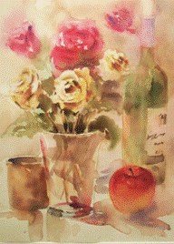 (上の水彩画をシニア活動室に飾っています) |