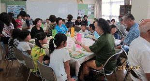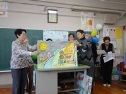 長崎小学校のふれあい給食会に朗読グループやパソコングループ等から20名が参加しました。 長崎生まれの私、実家の父親や3人の子供と親子3代が長崎小学校の卒業生です。 ベビーブームまっただ中に生まれた私の小学生の頃は、5クラスありクラスの人数も50人〜55人ぐらいだったと思います。 今回、一緒に給食をいただいた3年生は、1クラスで36名ということでした。 綺麗な字で書かれた招待状を手に3年生の教室にむかい、受付で手作りの名札をもらってふれあい給食会が始まりました。 カルタ取りでは、いつの間にか夢中になり負けまいと本気で頑張りましたし、3年生の皆さんの「ともだち」の詩の群読や朗読グループの紙芝居と楽しい時間が続き、ランチルームに移動して、いよいよ給食になりました。 献立は、ほたてごはん、大根とイカの煮物、 豚汁、デコポン、牛乳でした。 私達には、お茶もいれていただきました。 名前が書かれた手作りのランチョンマットの上に生徒さんが手際よく運んでくれた料理が並び、私の頃とは違うな〜と思いながら美味しくいただき、お腹がいっぱいになりました。 食後にクイズを楽しみ、手作りの品のお土産をいただき、楽しい給食会は、終了となりました。 生徒さん達は、1クラスでクラス替えがなかったからか、お互いの性格がよくわかって接しているなと感じました。 デポコンの皮を口にはめこむようにいれて、皆に見せるひょうきんな子、それを見て真似をする子、一生懸命、気を遣ってくれる子、おとなしい子と
