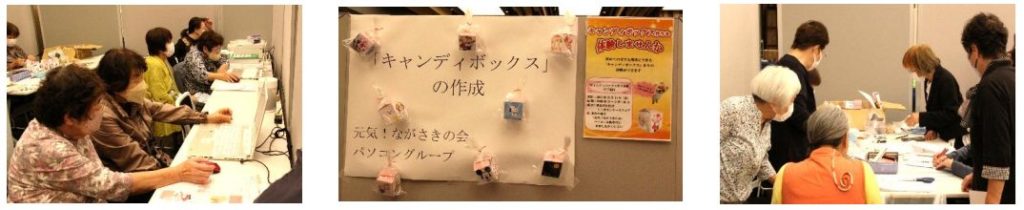 10 月 15 日に豊島区役所で開催された「介護予防大作戦 in 2025 に参加しました。今回はキャンディーボックスを作る事を体験して頂く事になり、数日前から挿入する図を選んだり、モデルにするキャンディーボックスを作ったり、後でご自分でも作れるように教材を準備したりと皆で色々頑張りました。当日は 44 人の方が 10 種類の図柄(来年の干支、可愛いらしい子ども、キティちゃん、スヌーピー、猫、秋の花 等)から選んで頂き様々な図柄のキャンディーボックスを作って頂きました。体験して下さった多くの方が出来上がったキャンディーボックスを見てとても喜んで下さり、お孫さんやご主人、お友だちに是非プレゼントしたいと言ってくださいました。