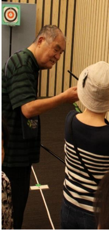 吹矢で腹式呼吸を学び、その呼吸を矢に伝え、的に向かって吹く、的に当たった時の喜びを少しずつ味わっています。半年たった今、動作が大分美しくなったと云われ上達を感じています。今回の介護予防大作戦では吹き矢体験コーナーに参加し、多数の方々に楽しく教えることが出来、我々ももっとレベルアップをと話し合いました。月に二回の練習日を楽しみにしています。