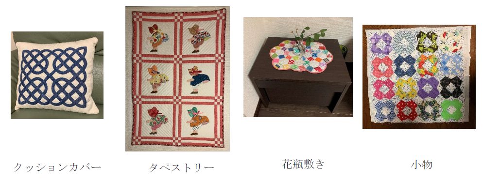 ちょうど時間に余裕ができたとき、近所にパッチワークを教えるお店ができたので、通い始めて、現在に至っています。最初は小物の運針からでした。 いくつも作りましたが、一番大きな作品は、ベットカバーでした。これは本当に大変で、夜中までやることもあり、5か月位かけ、仕上げました。 でも誰にもあげられず、いまだに大事にしまってあります。 あほですね! 小物は数知れず作っては、いろいろな方に差し上げ、とても喜ばれていると私は思っているのですが、如何でしょうかね? 最近は目も悪くなり、思うように針は進みませんが、でもパッチをしているときは夢中になり、何も忘れ外に出る時間も惜しくなります。