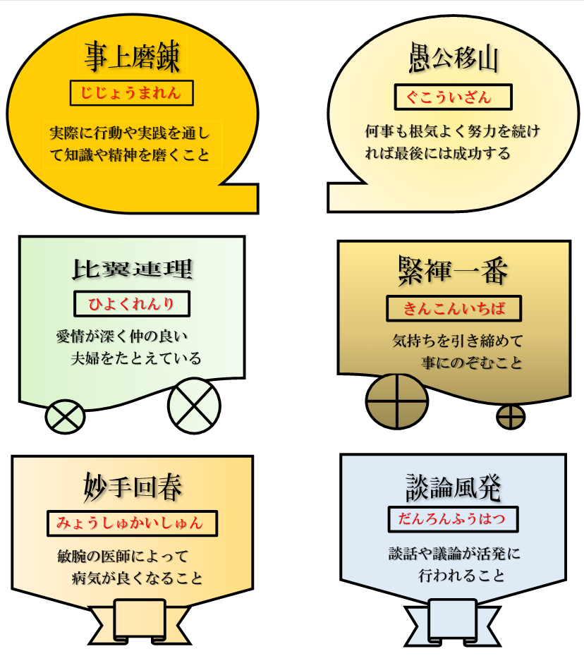 操作の仕方も不慣れなために何から手をつけたらよいのか迷いました。又、後で同じ箇所を探すにも大変でした。四文字熟語・その読み方や意味と説明を調べながら聞き覚えのあるものもありました。いろいろな分野に整理されその凄さに驚きました。時間がたつにつれ場の雰囲気や語り合いにも活気がでて楽しく過ごせました。幾つか作ってみました