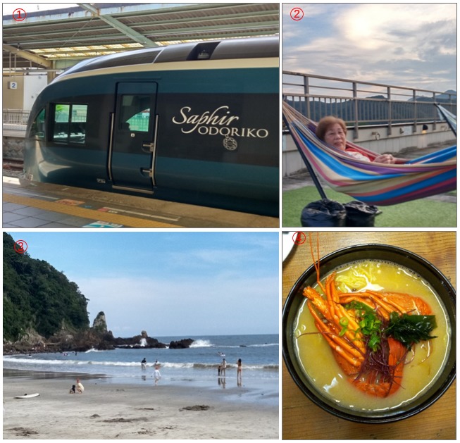 ➀ 特急サフィール踊り子号 ➁ 空を見ながらハンモック