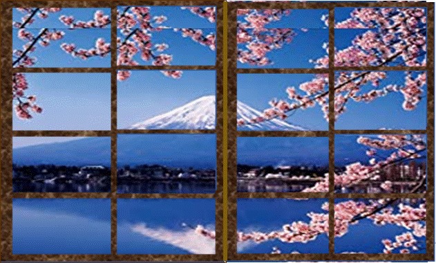 次のテキストに行く前に、復習の復習で窓越しの風景をやりました。簡単そうに見えたのですが、これもなかなか面倒でした。色々と工夫しながらきれいな景色の中に窓がはりついた時は、感激でした。