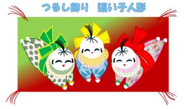 以 前 「つ るし 飾り這い子人形」(ぬりえ)を習いましたが、今回(ぬりえ)ではなく一から図を描いて仕上げました。人形の着物の絵柄としては松、竹、梅を入れてみました