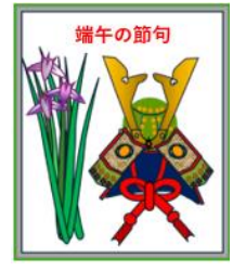 子どもの成長を祝う行事、桃の節句と端午の節句を表し並べました。